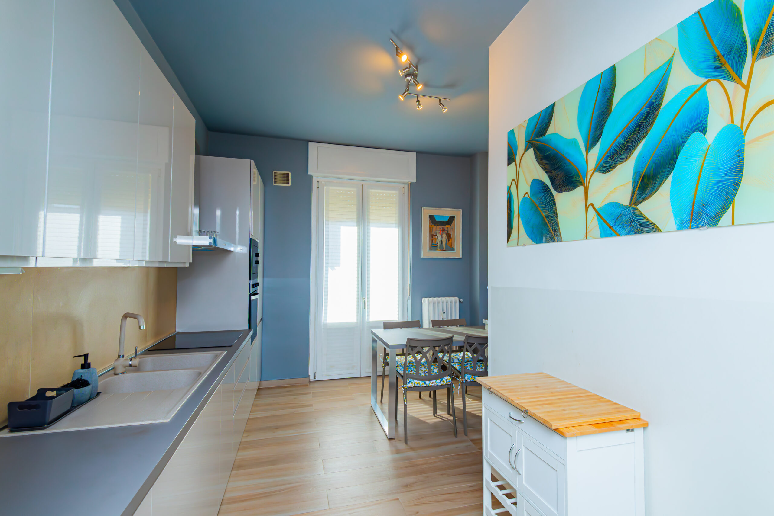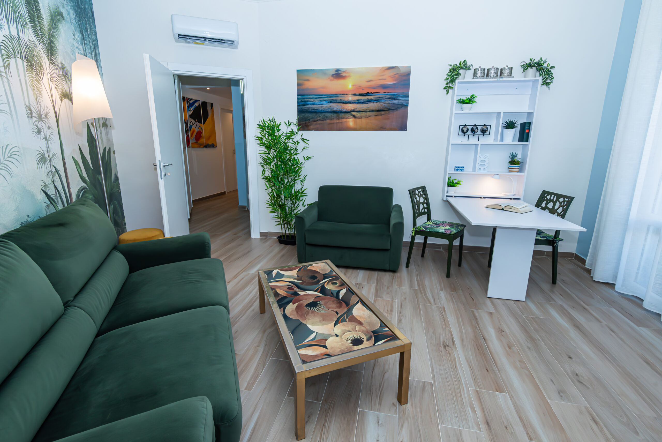 L’appartamento dispone di una camera da letto principale con un comodo letto matrimoniale e bagno privato e un luminoso soggiorno office con u. divano letto matrimoniale. Un divano letto singolo a fianco, permette di ospitare fino a 5 persone in caso di necessità. La cucina completamente attrezzata vi permette di preparare i vostri piatti preferiti, mentre i due balconi offrono una piacevole vista e uno spazio esterno con salottino per momenti di relax.